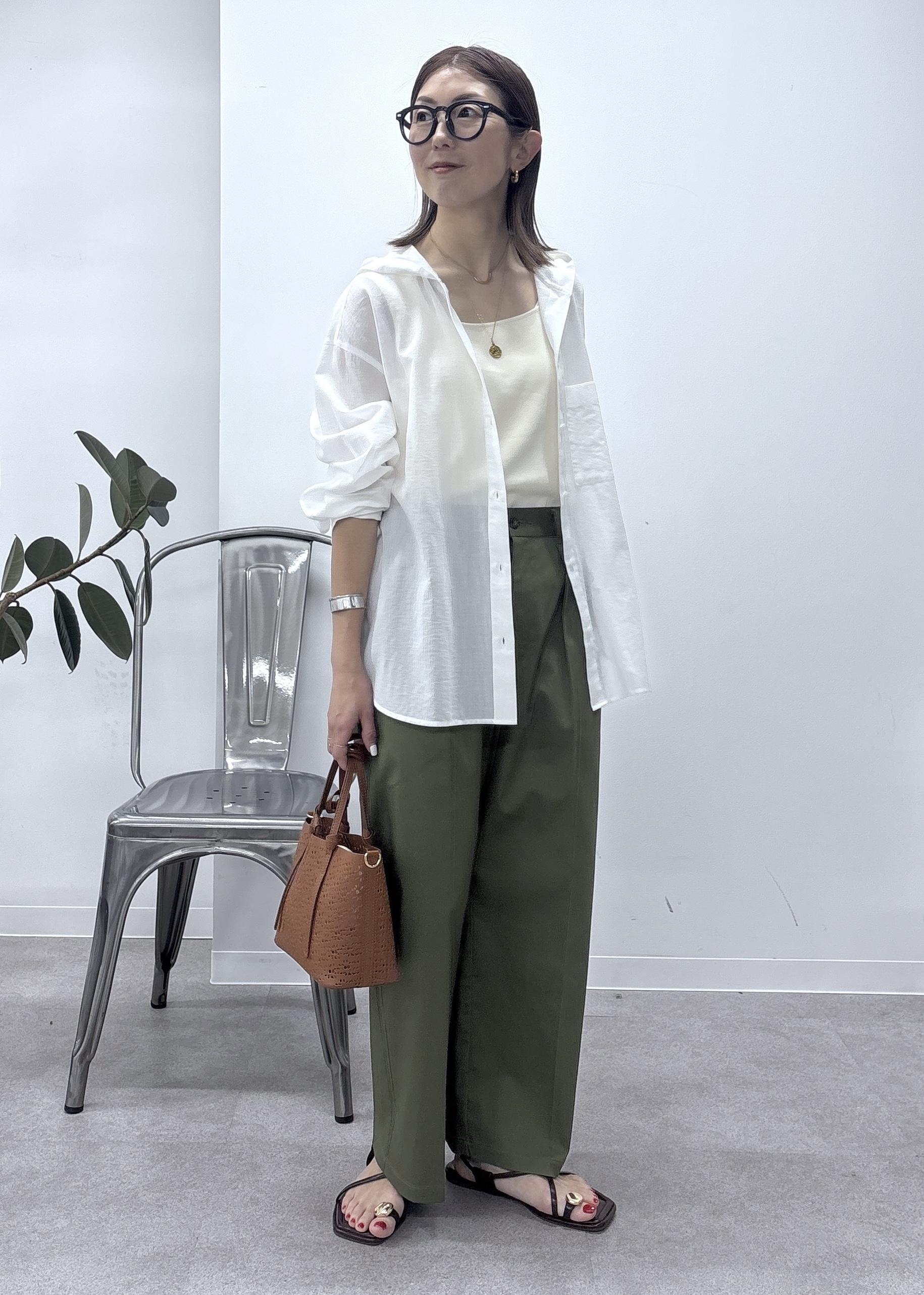 【cahoさんコラボ】低身長・小柄さんサイズ エアリーリネンライク タックワイドパンツ