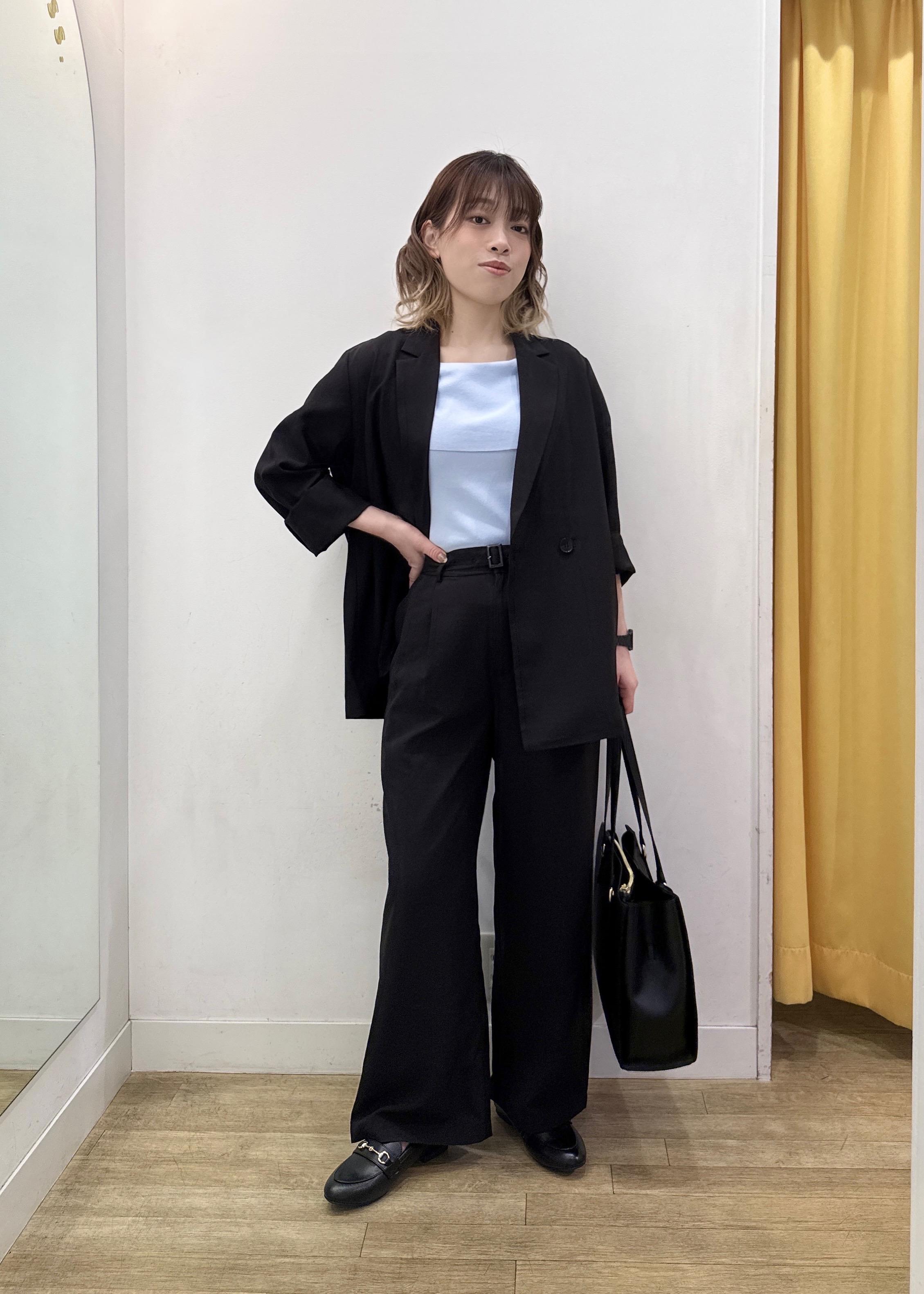 【cahoさんコラボ】低身長・小柄さんサイズ エアリーリネンライク タックワイドパンツ