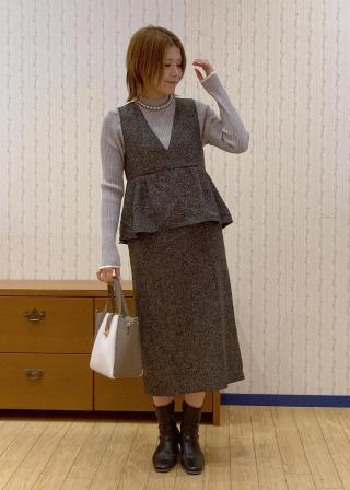 ボタンが付いていて、荷物の量や気分によって大きさを変えられる2WAYデザインです。持ち手のフリルがとても可愛いく、ベロア素材はこれからの時期大活躍間違いなしです!