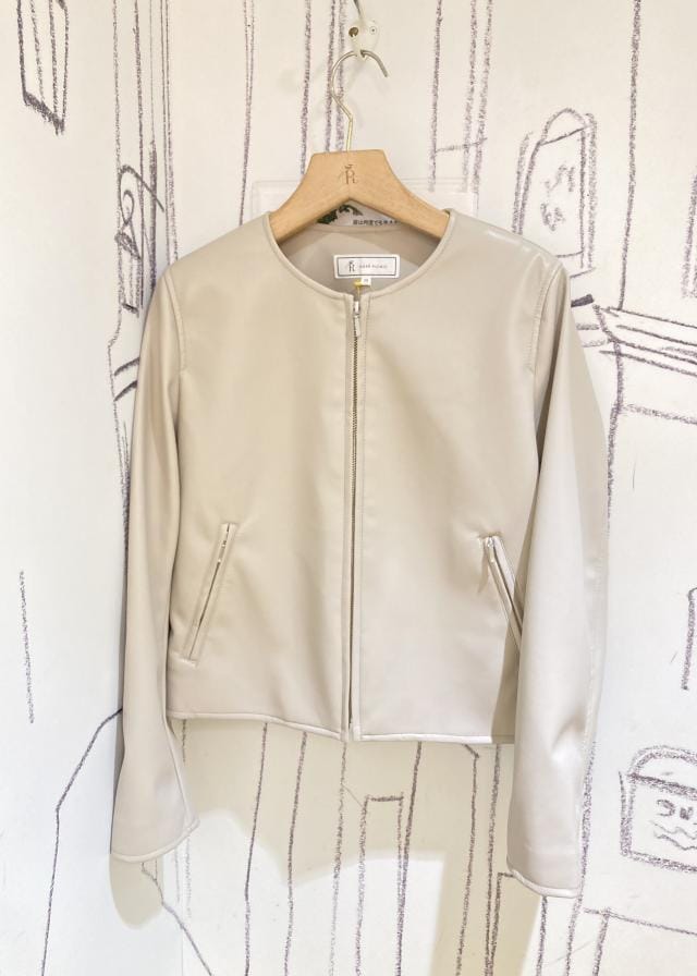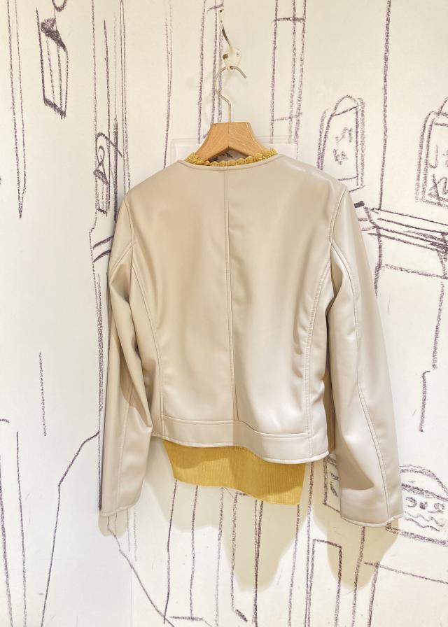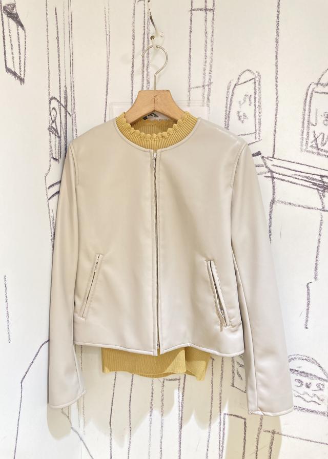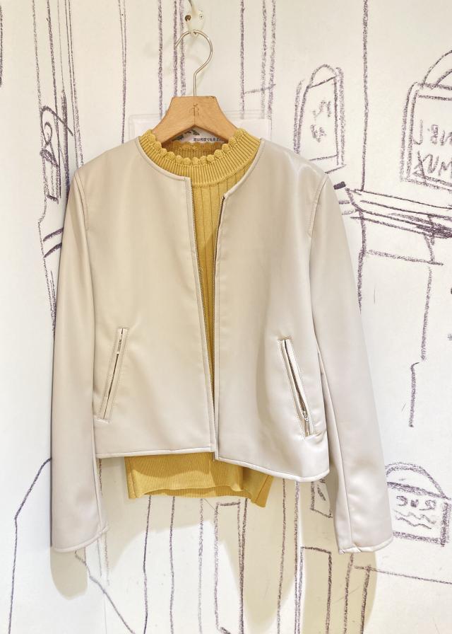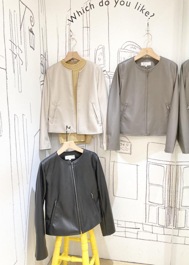 毎年大人気のフェイクレザージャケットです。 カラーは合わせやすいベーシックな3色展開。 首周りの開き具合と丈感がコンパクトですっきりとしたシルエットです。 カットソーや薄手のニット、ワンピースの羽織にも合わせやすく、きれい目な印象なので通勤時のアウターにも◎ 春先に着ても良いので、長くお召し頂けます。