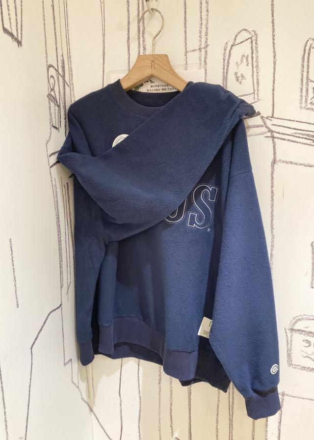 フロント部分のロゴとメリハリのあるカラーが特徴の起毛トップスです。