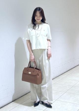 レースのバッグで可愛らしいコーディネートに仕上げました。