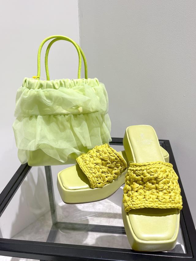 身長:162cm|普段の足サイズ:24.0cm|足長:22.0cm|足幅:9.8cm|足囲:22.3cm マクラメ編みのニット素材のサンダル。モードな雰囲気で素敵なサンダルです。編み目が素敵に見えて、楽におしゃれに見えます。ソールも厚めで、ヒールの高さも低く楽な履き心地です。