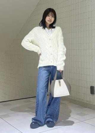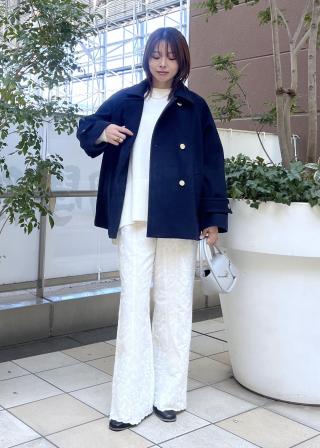 着丈はジャストで短めなので、ボトムを選ばず合わせやすいです。