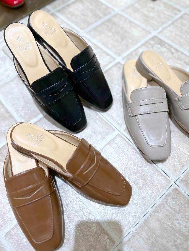 ミュールでありながら、足へのフィット感がよく不快感のない履き心地です◎さらっと素足や、靴下と合わせて季節長く履いていただけます。パンツスタイルとの相性◎