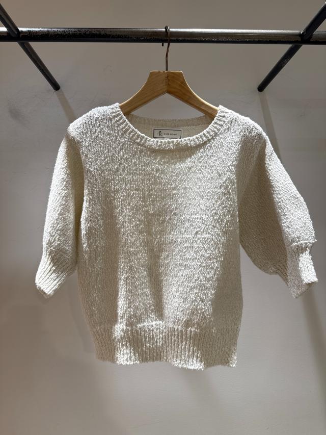 この夏に活躍してくれるおすすめのサマーニットです。さり気ないラメ感がポイントで、シンプルながらも華やかな印象を与えてくれます。着心地も快適で、幅広いコーディネートに合わせやすいアイテムだと思います。丈感はコンパクトめ長さでインでもアウトでも着用していただけます。