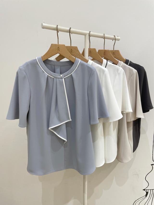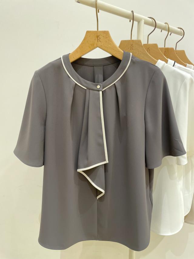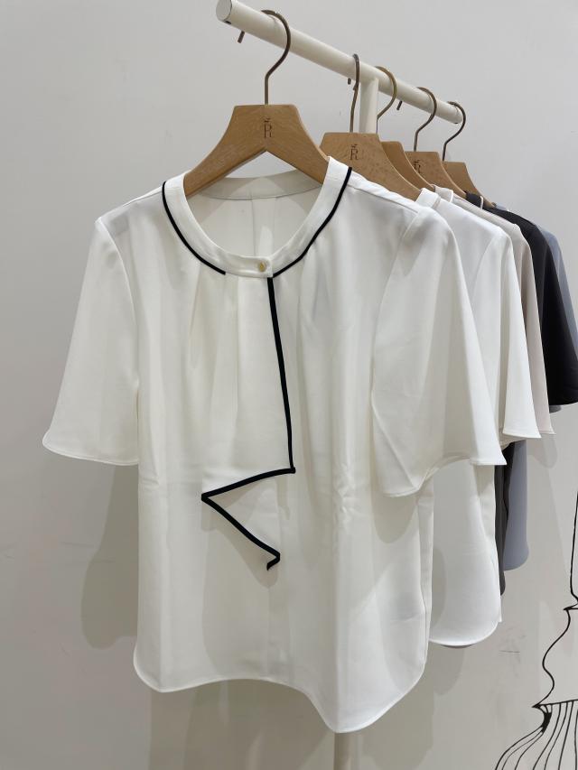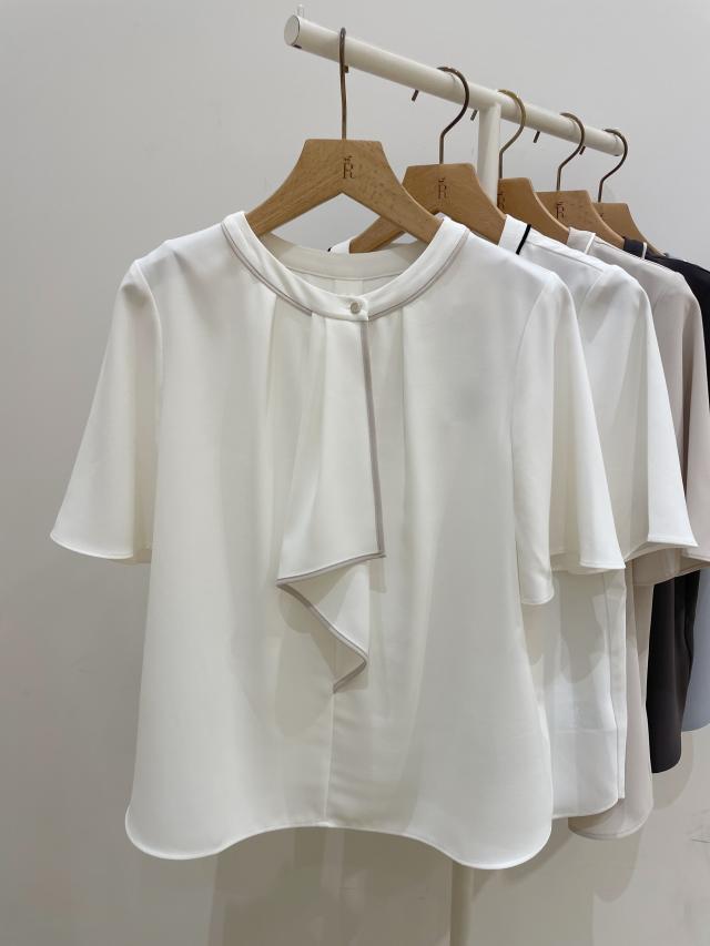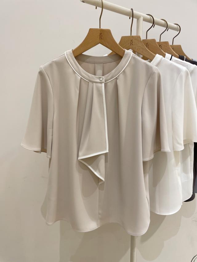 フロントのリボン風ディテールが上品で女性らしさをプラス。1枚で華やかに見せられます!