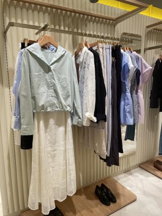 着丈が選べ、38サイズは腰にかかるくらいのサイズ感で、コンパクトな着用なので、ワイドなパンツと合わせてAラインシルエットを作ってあげるとバランスが良いと思います。