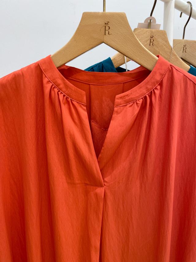 ゆったりとしたシルエットで体のラインが出にくく、ジャケットやカーディガンなどの羽織物と合わせていただくのも◎