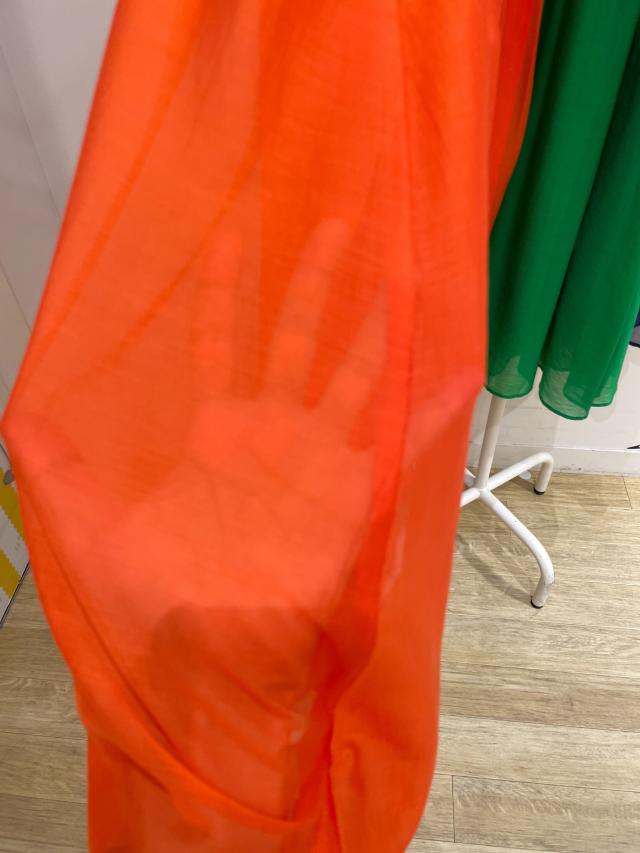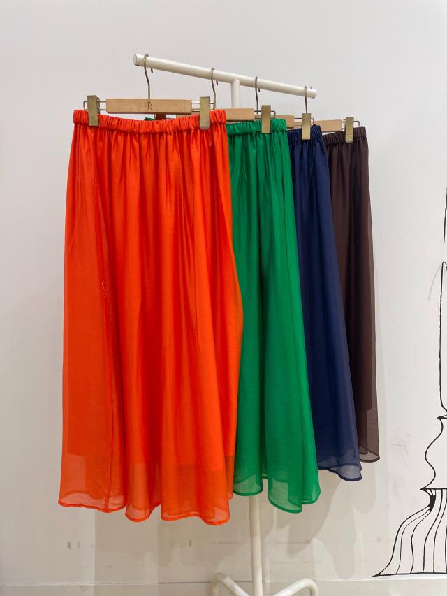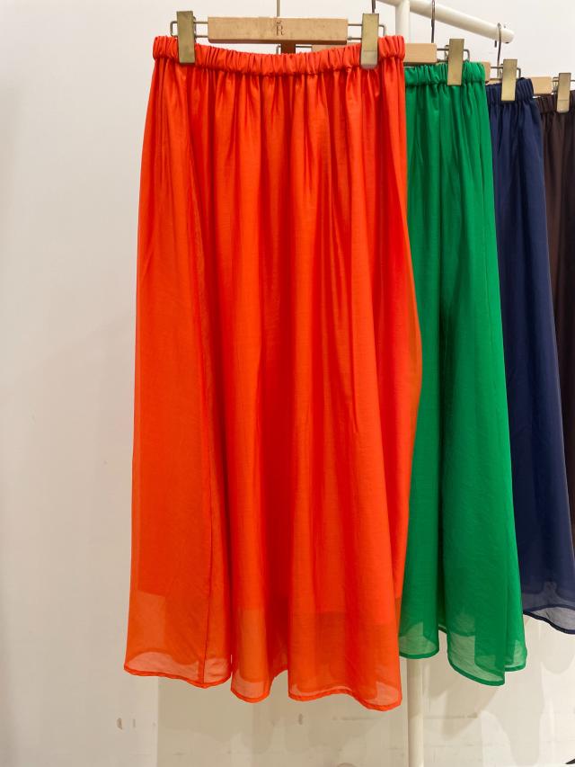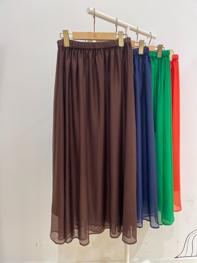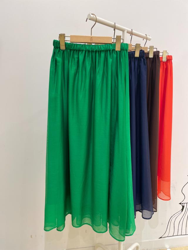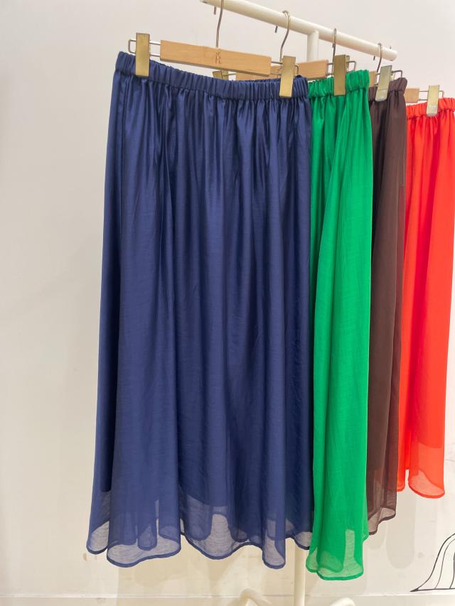 程よい光沢感があり、Tシャツ合わせでもカジュアルになりすぎないスカートです。