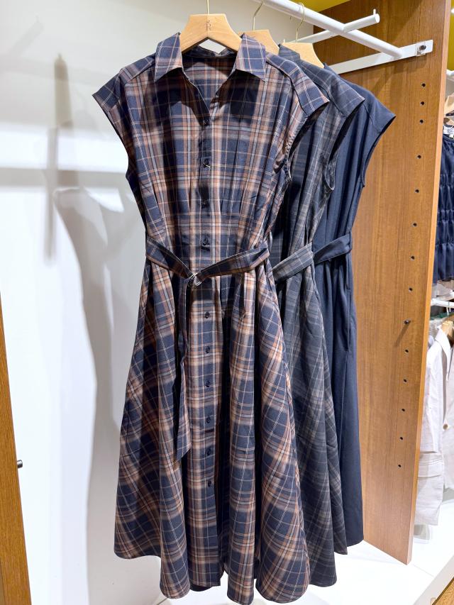 チェックは季節感が出て、無地のネイビーはお仕事使いにもしていただけるようなクラシックな一枚です。