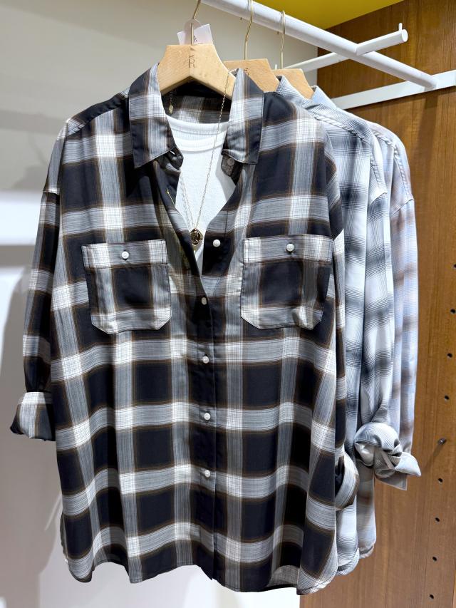 羽織りでも腰巻きでコーディネートのポイントにもしていただける万能シャツ。