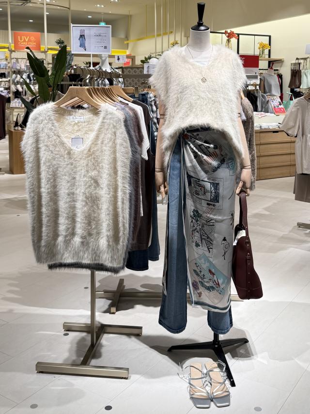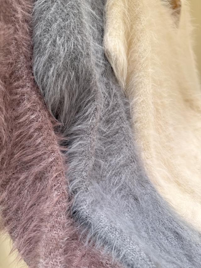 毛足のあるフェザーニット素材を使用しており、柔らかな肌触りが特徴です!