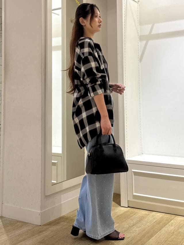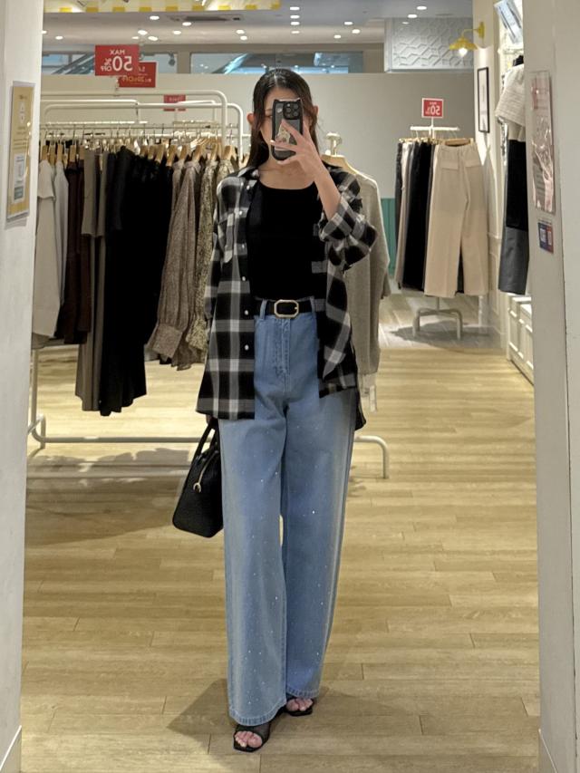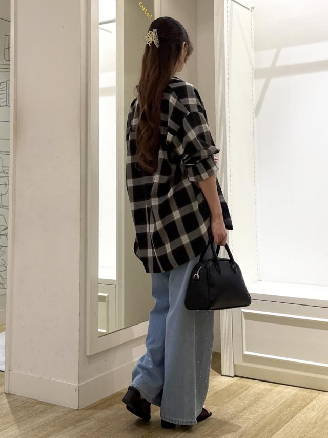 今回はゆったりサイズのチェックシャツとビジューデニムで秋を先取りしたカジュアルコーデにしてみました。シャツは1枚あると腰巻や斜めがけ、ビスチェ風にしたりとアレンジが沢山できるのでぜひ参考にしていただけると嬉しいです♡