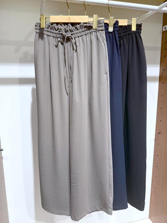 とろみ感があり、上品にも着ていただけるワイドパンツ。