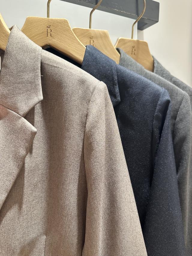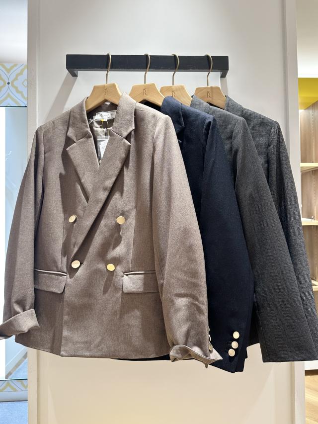 レトロな雰囲気の金ボタンと、スタイリングしやすい丈感がオススメのこちらのタイプ。