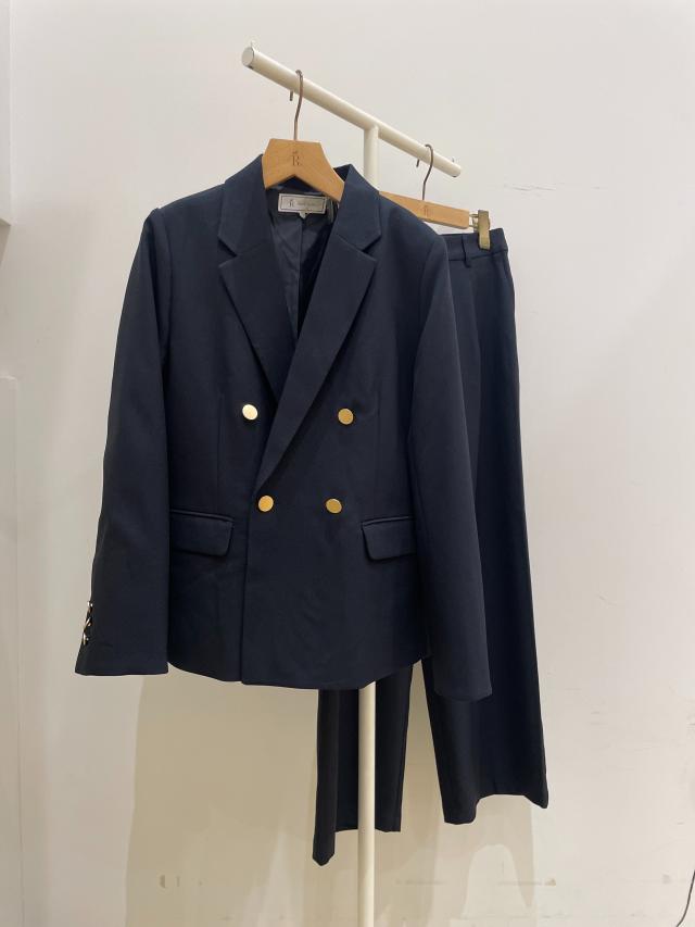 レディハンサムシリーズ ウールライク金ボタンジャケット(半裏地)/セットアップ・通勤対応