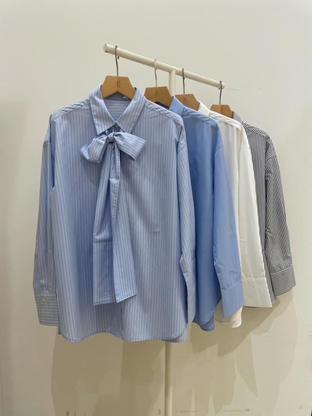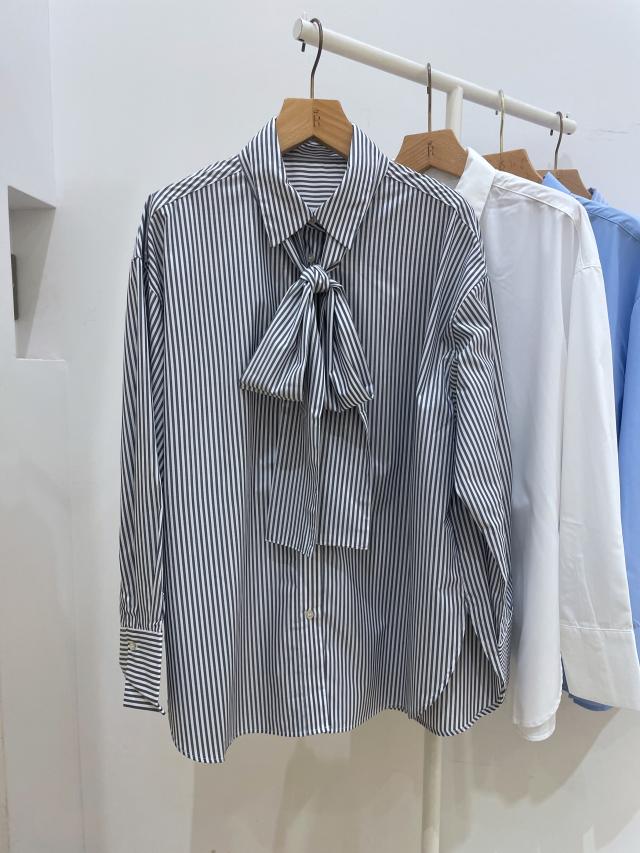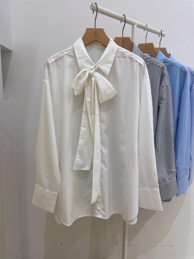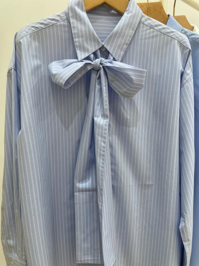 リボンに結べるタイは、取り外しができ、襟付きシャツとしてもお使いいただけます。