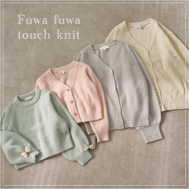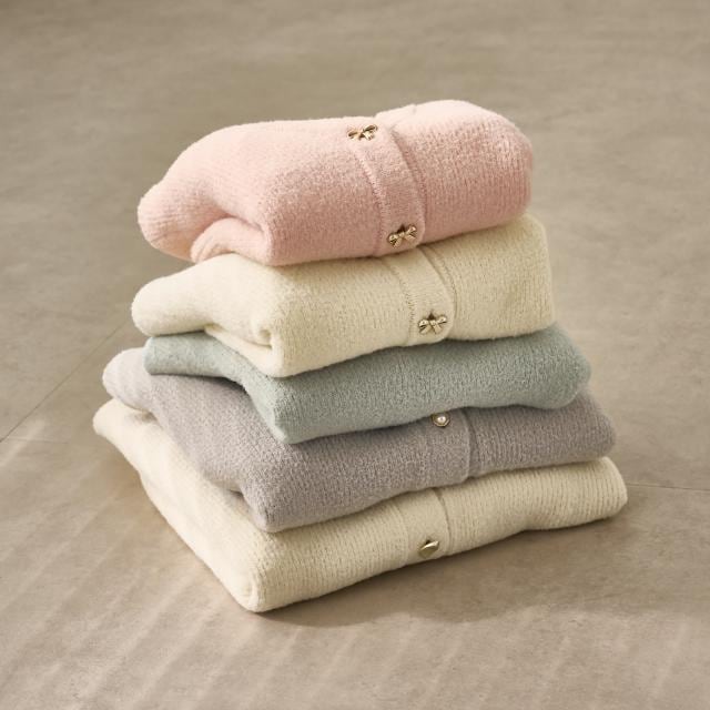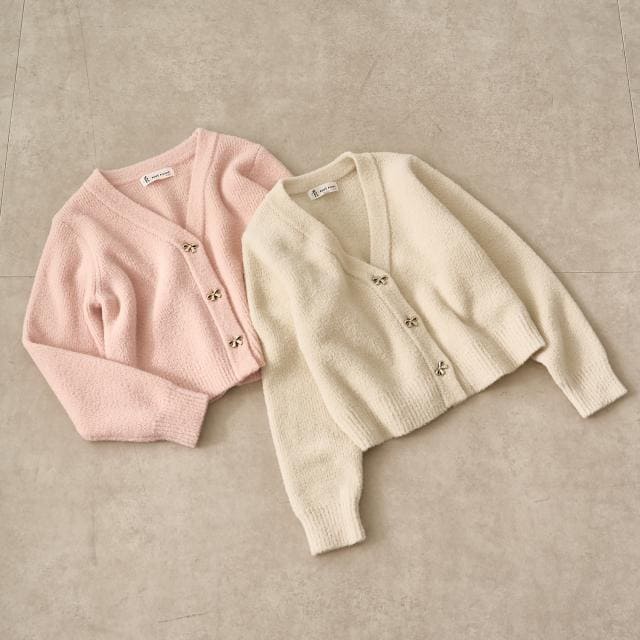 ポイント2:カーディガン(品番:GRK65010)はリボンの形をしたボタンなのがポイント。