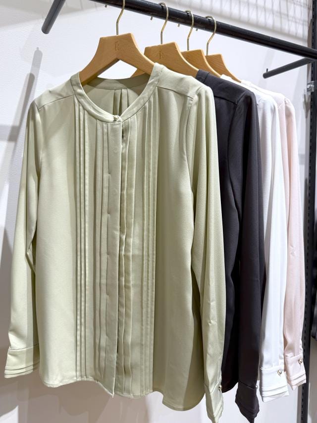 首元と袖にゴールドボタンが施されており、きちんと感のある印象に。