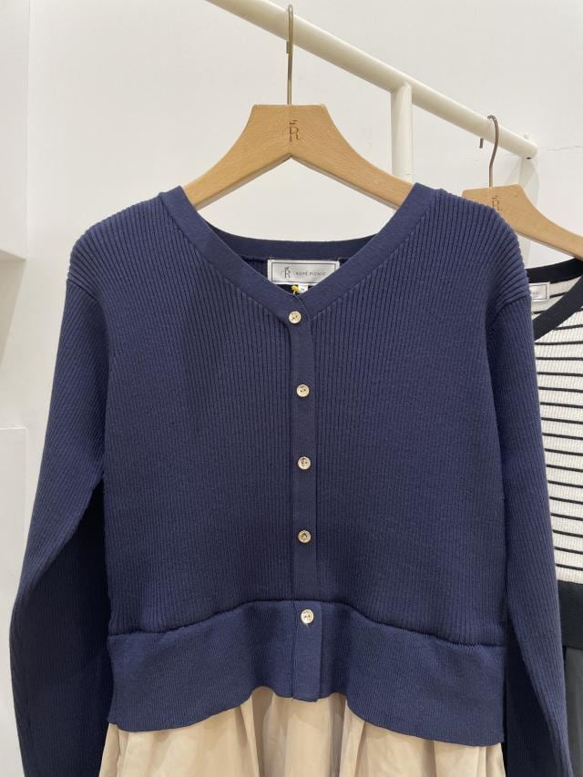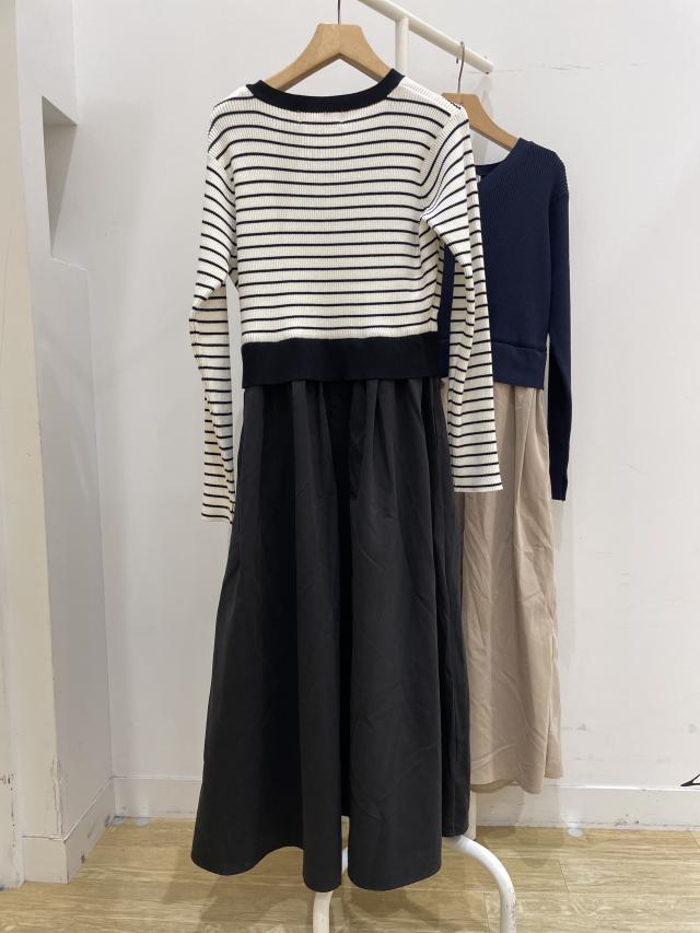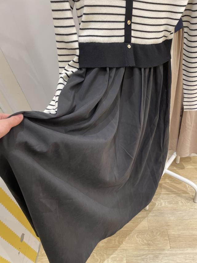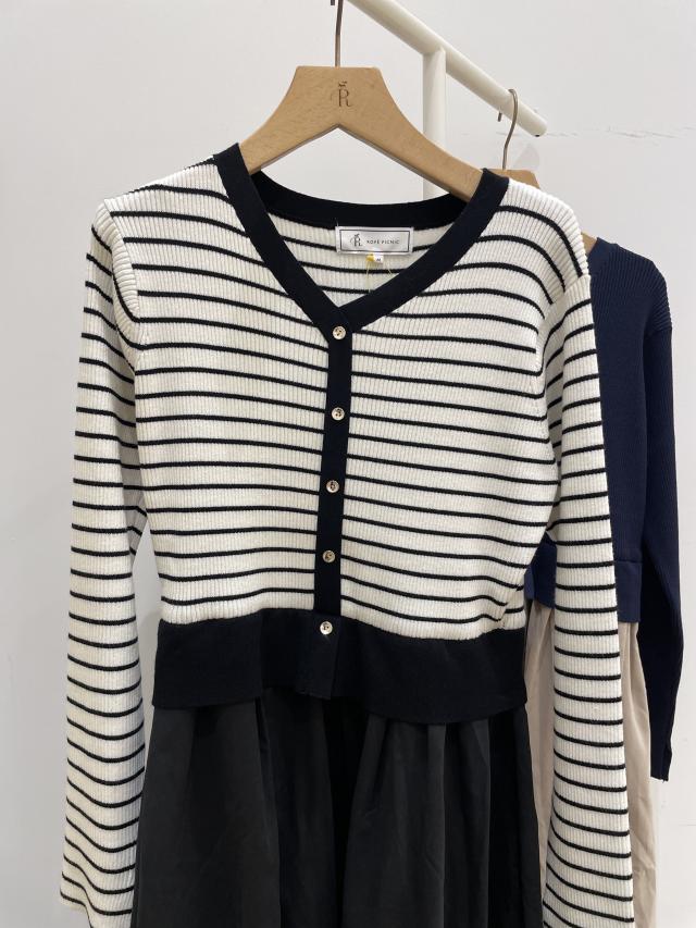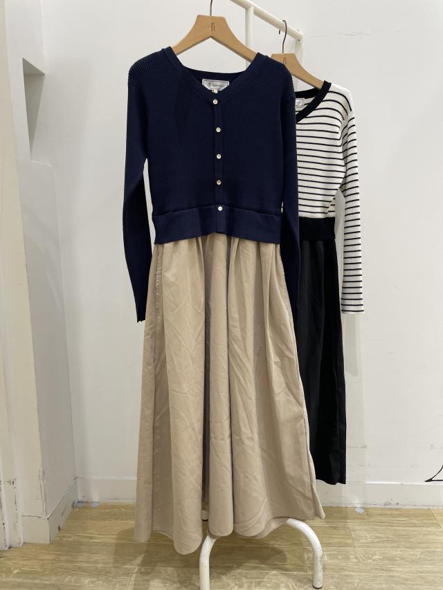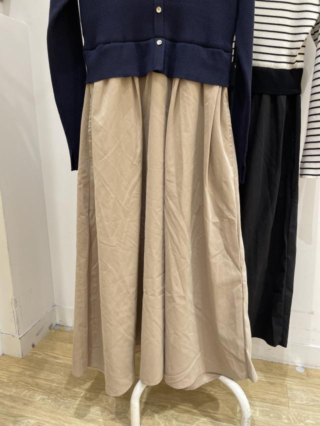 スカートとカーディガン組み合わせたような、ワンピースで、楽におしゃれに決まります。