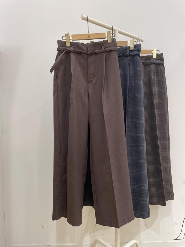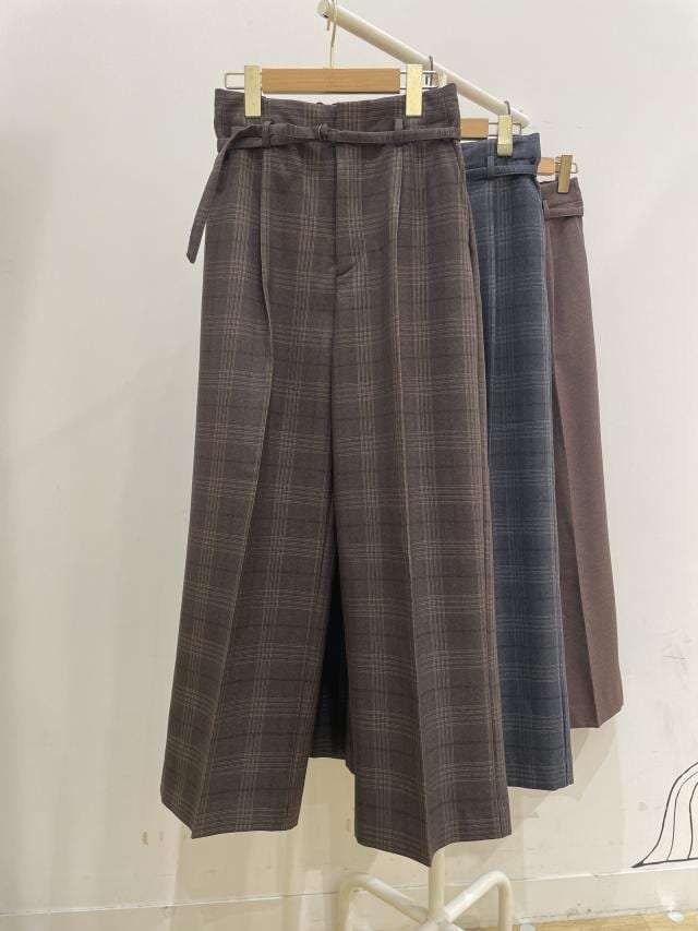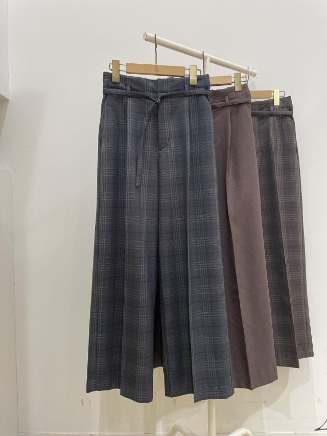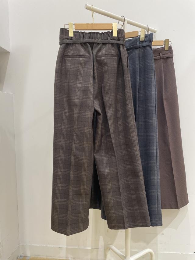 裏起毛無地&チェックアソートワイドパンツ/防シワ