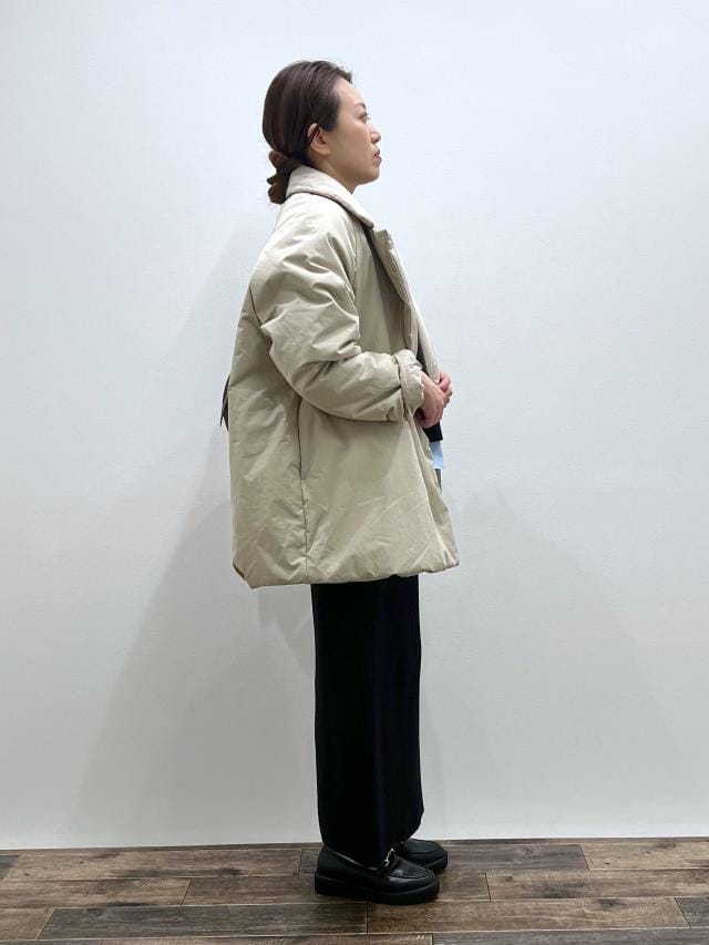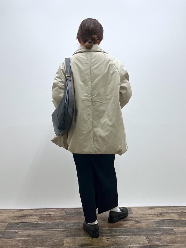 身長:164cm|骨格:ストレート|普段のトップスサイズ:38 とても軽く少し厚みがあるコートです。中にも着込めるサイズ感です。
