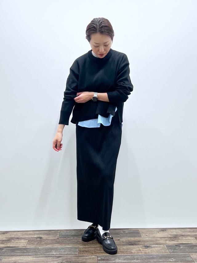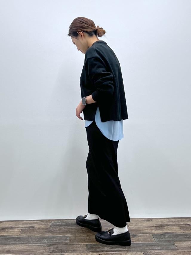 締めつけ感のないアイテムばかりですごく着心地がいいのにブラックのワントーン合わせで着痩せ効果も◎