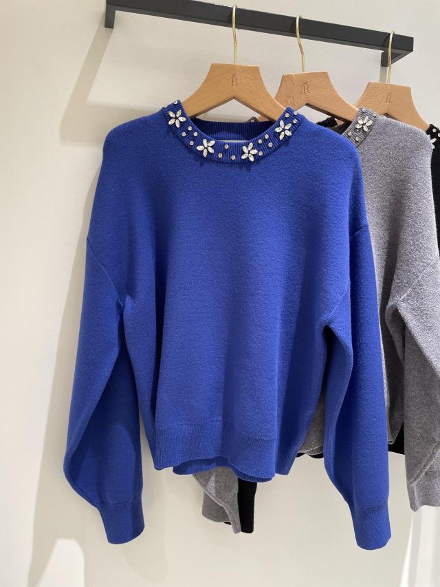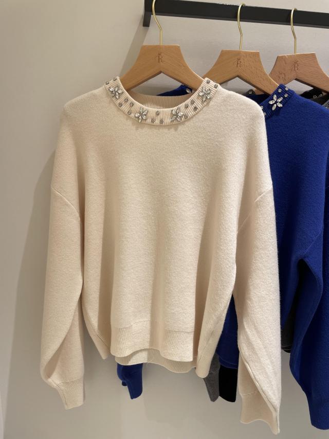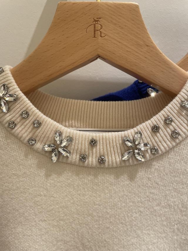 ビジューが他とは被りにくく、着てるだけで可愛くなれる印象です。