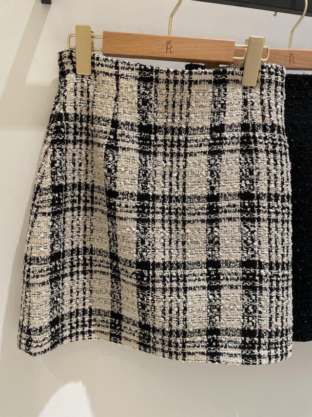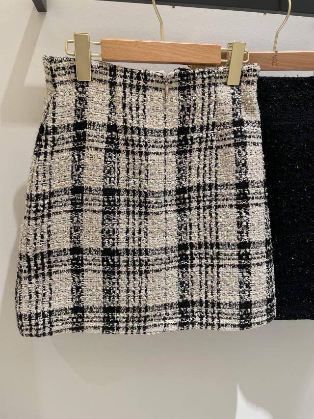 ファンシーツイードチェックミニスカート
