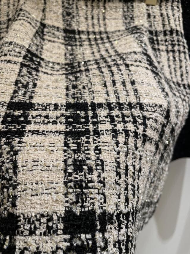 ツイード素材が上品見えしつつ、