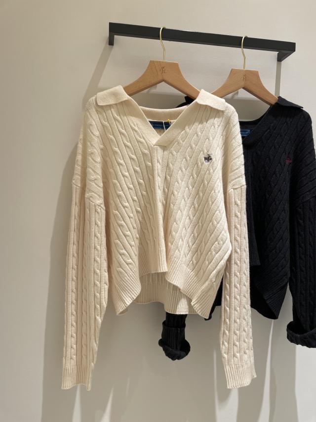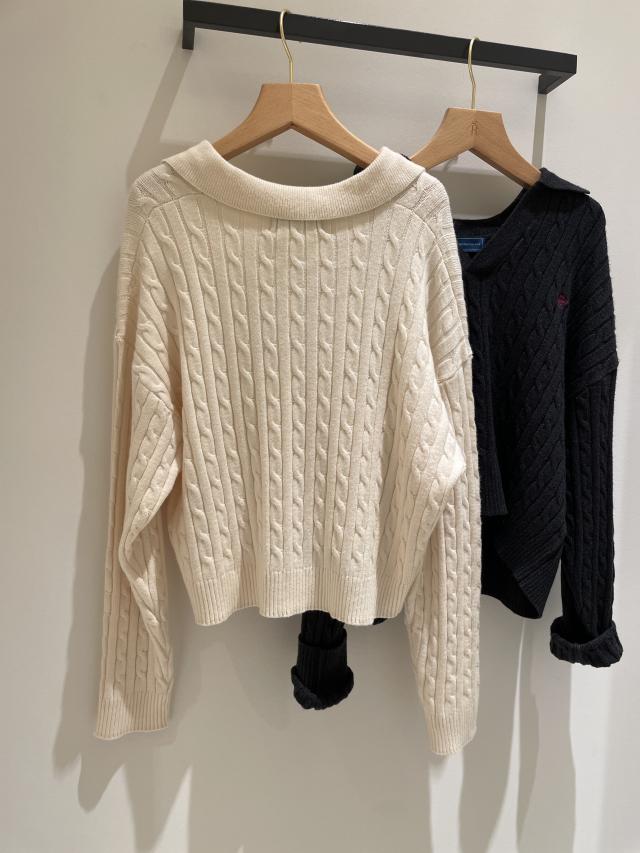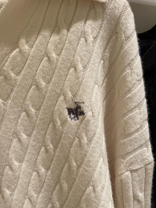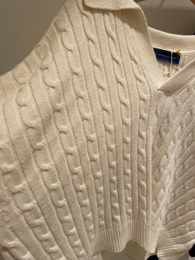 【BEVERLYHILLS POLO CLUB・新色追加】ケーブル編みクロップドスキッパーニット