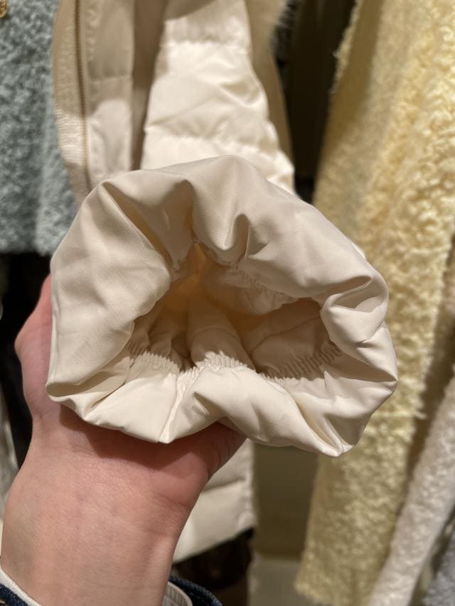 内側にドローコードがあるので、シルエットも変更できます。ファーとフードはどちらも取り外し可能です。