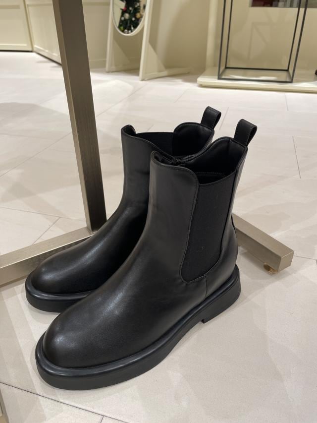 丸みのあるシルエットで、女性らしいショートブーツです。