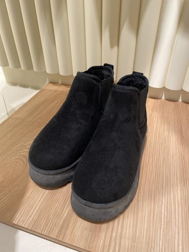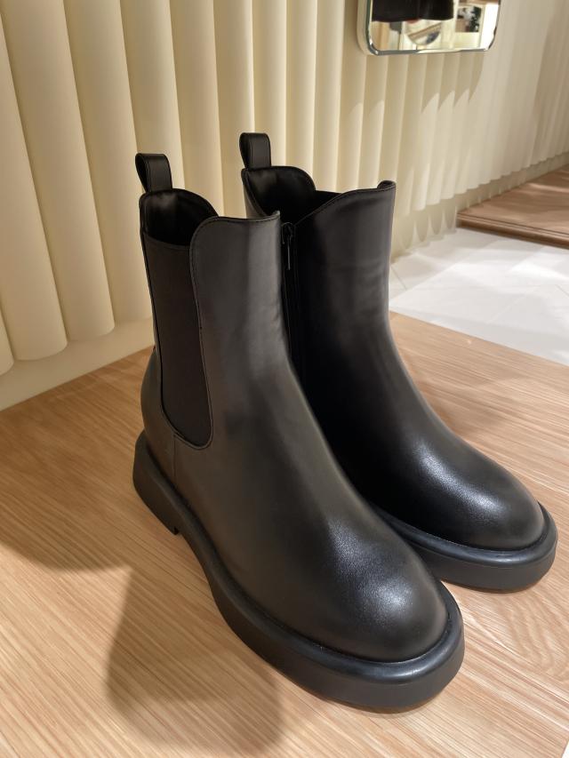 丸みのあるシルエットで、女性らしいショートブーツです。