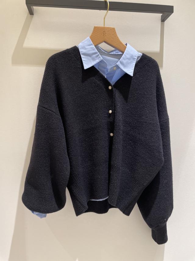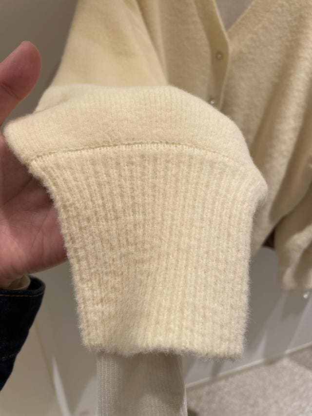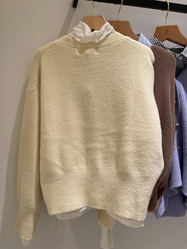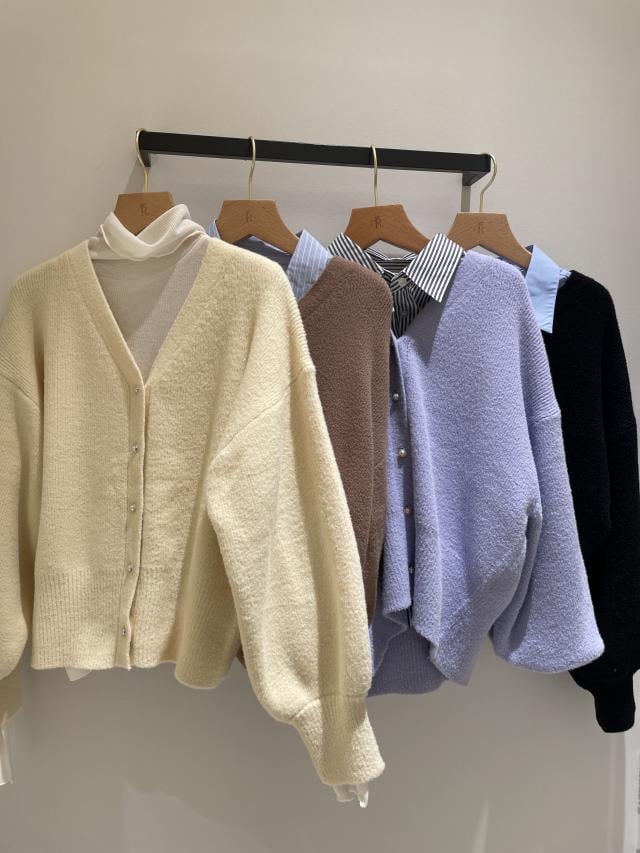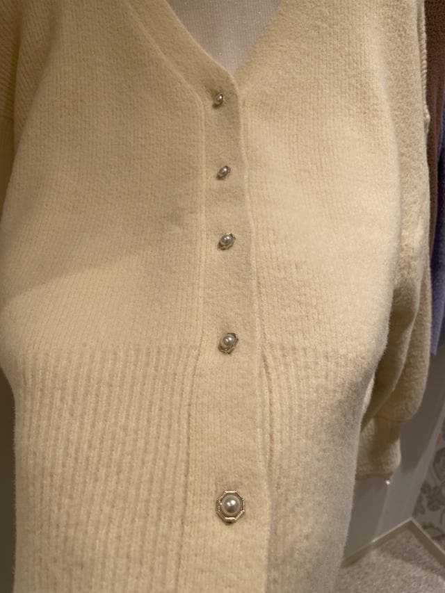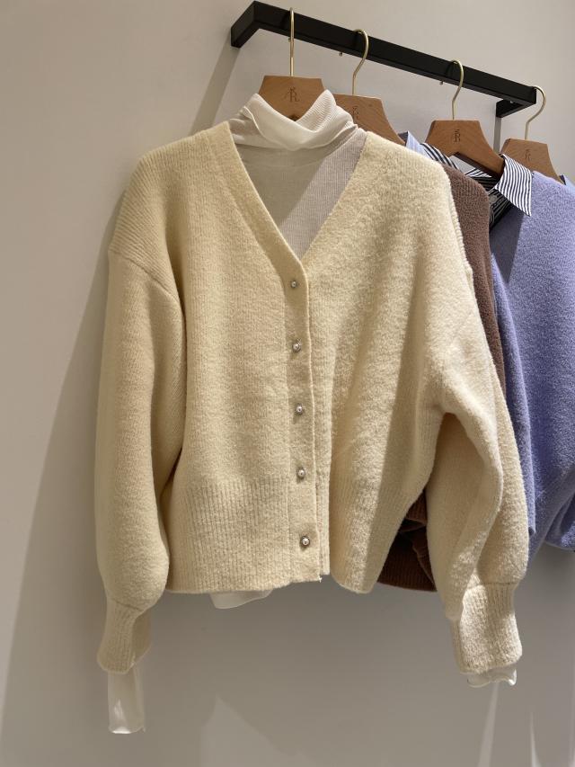 【モチモチ】スフレニットパールボタンショートカーディガン