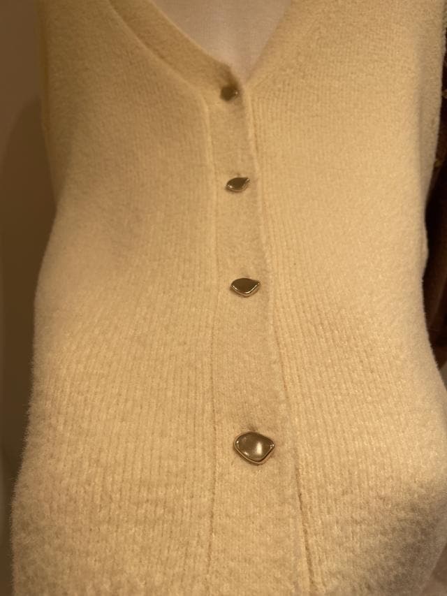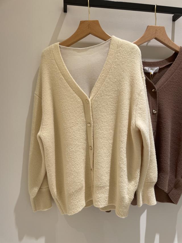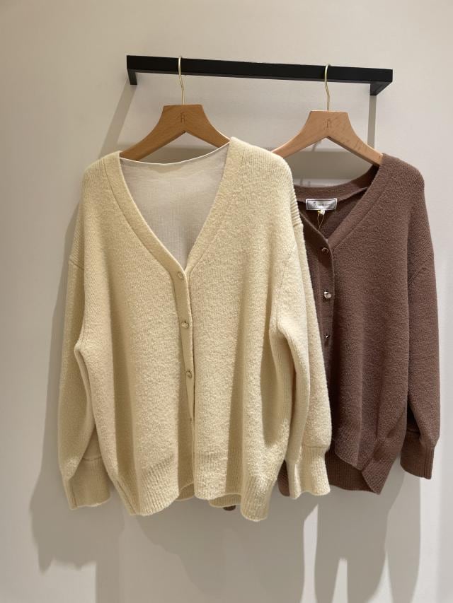 【新色追加】スフレニットシリーズ 変形メタルボタンミドル丈カーディガン/イージーケア・リンクコーデ