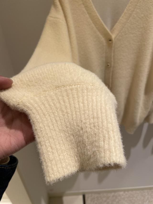 腰もしっかり隠れる、丈が長いカーディガンです。
