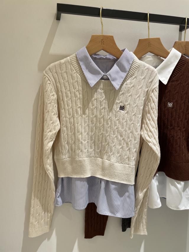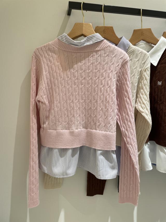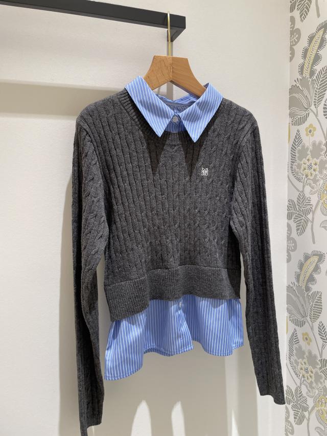 【美得】ハイゲージケーブシャツドッキングプルオーバー