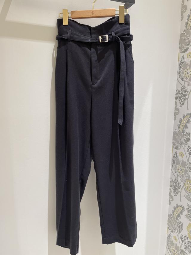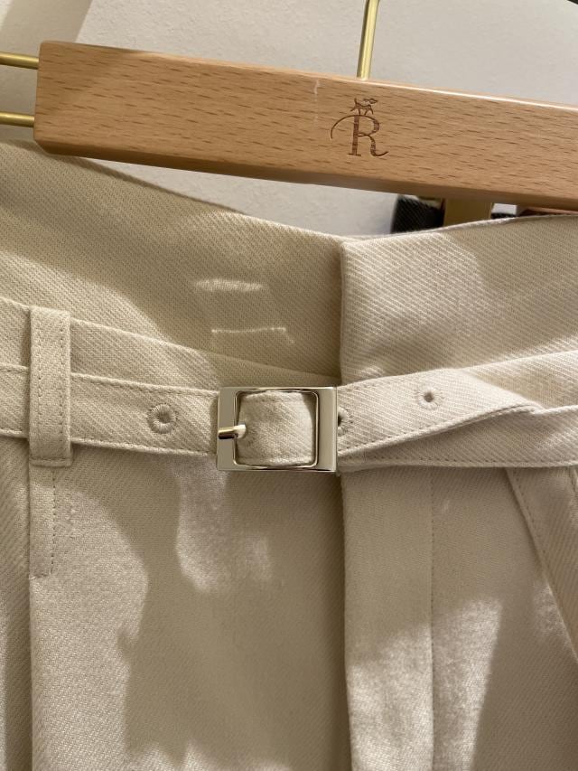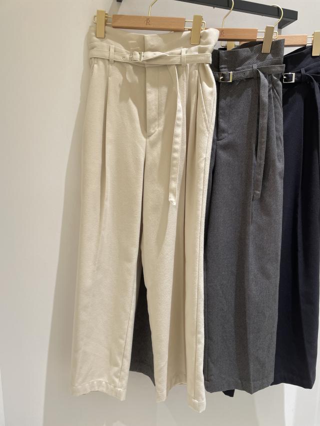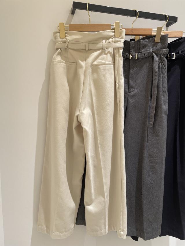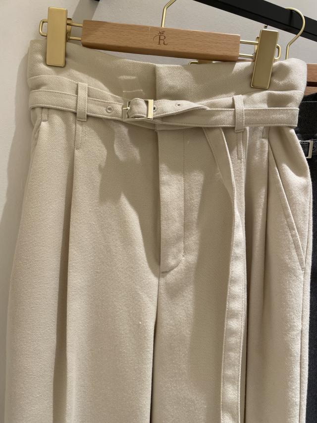 起毛ウールライク版ベルトディテールタックワイドパンツ