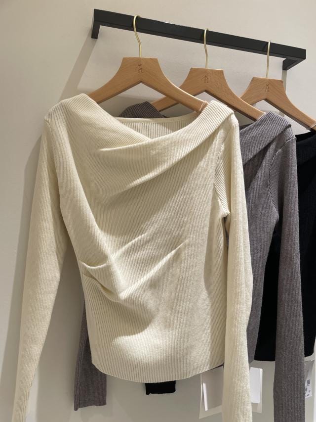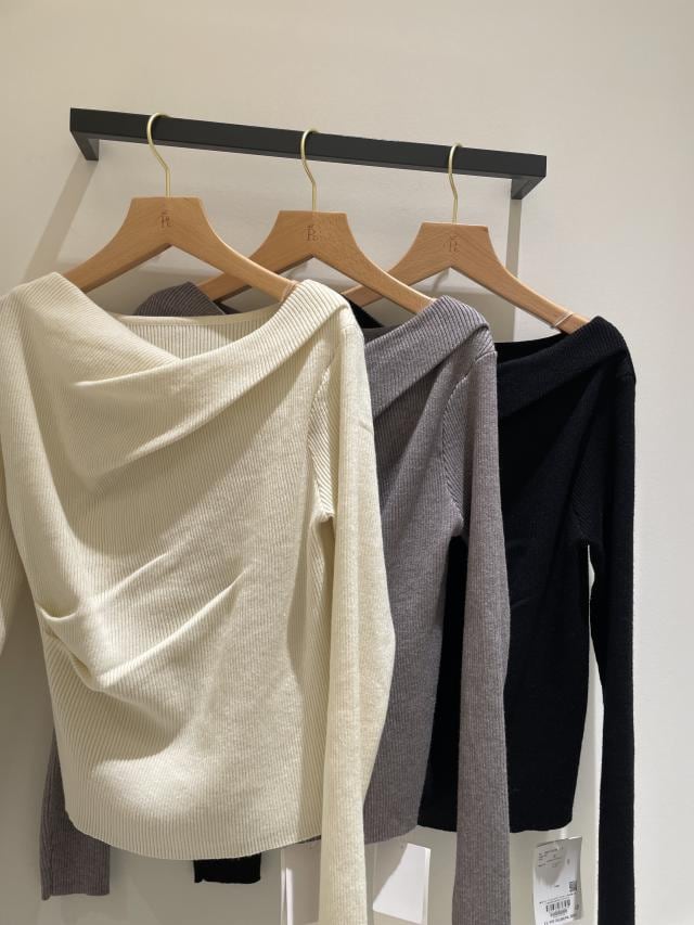 【美得】もちもちドレープリブニットトップス/イージーケア