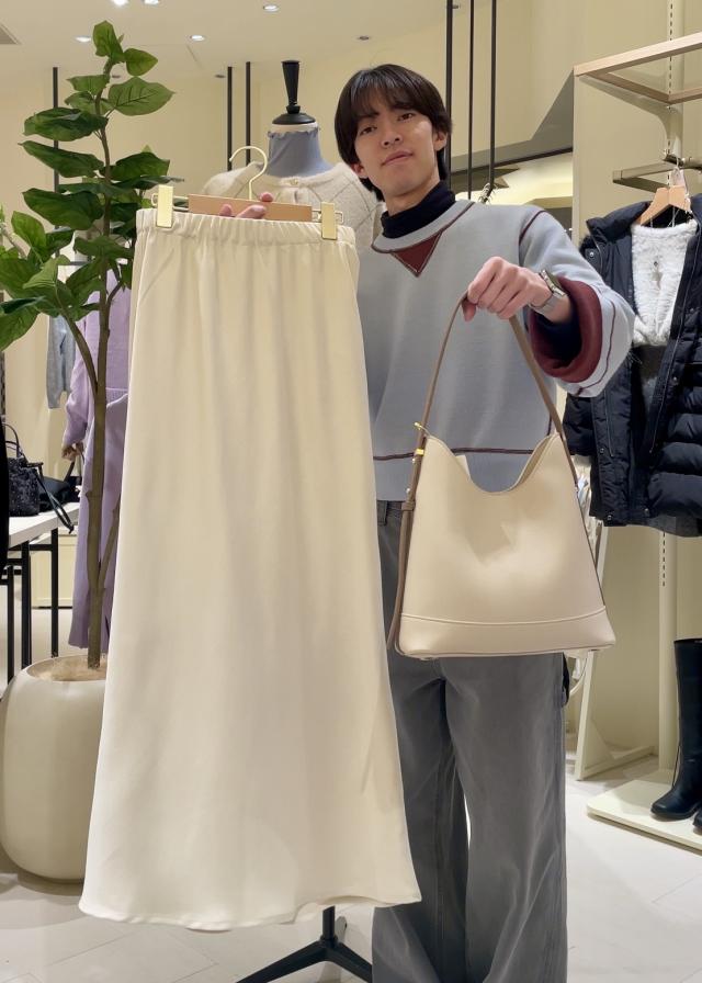 カジュアルは、スウェットやシャギーカーディガンと合わせると良いと思います。