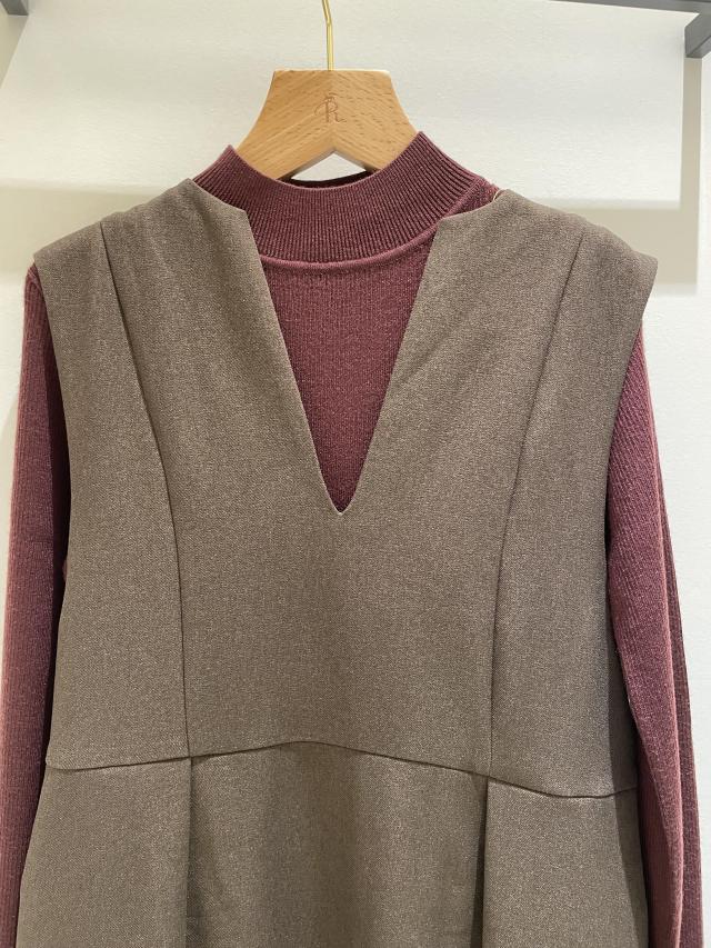 インナーは、ハイネックニットや襟付きシャツと合わせる良いかと思います。