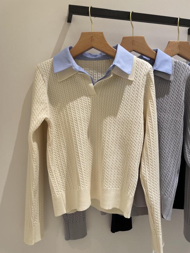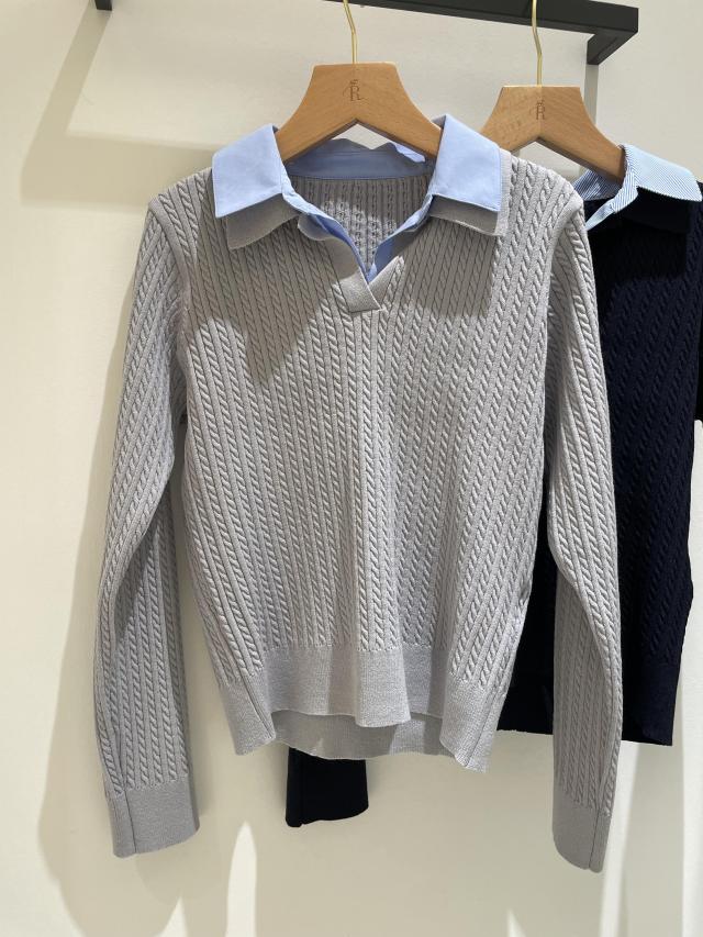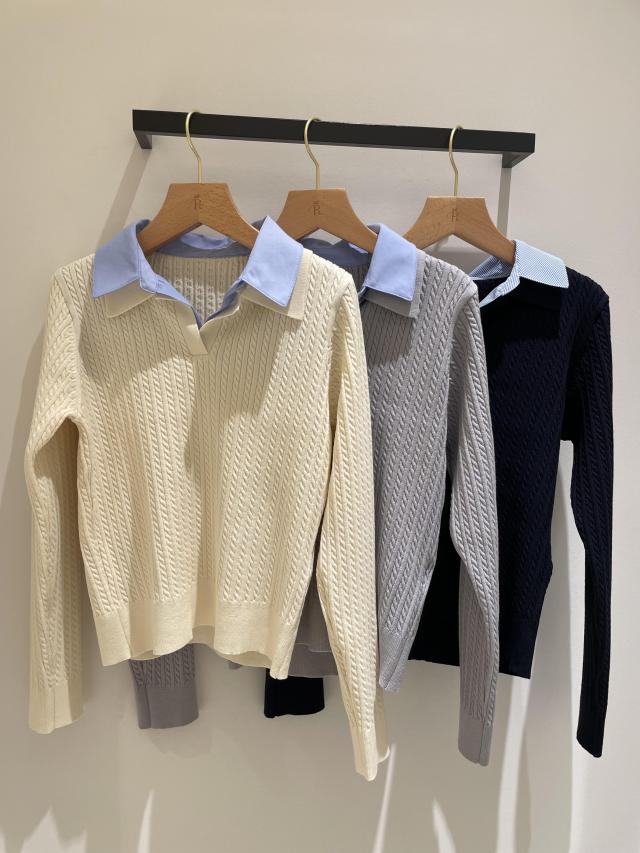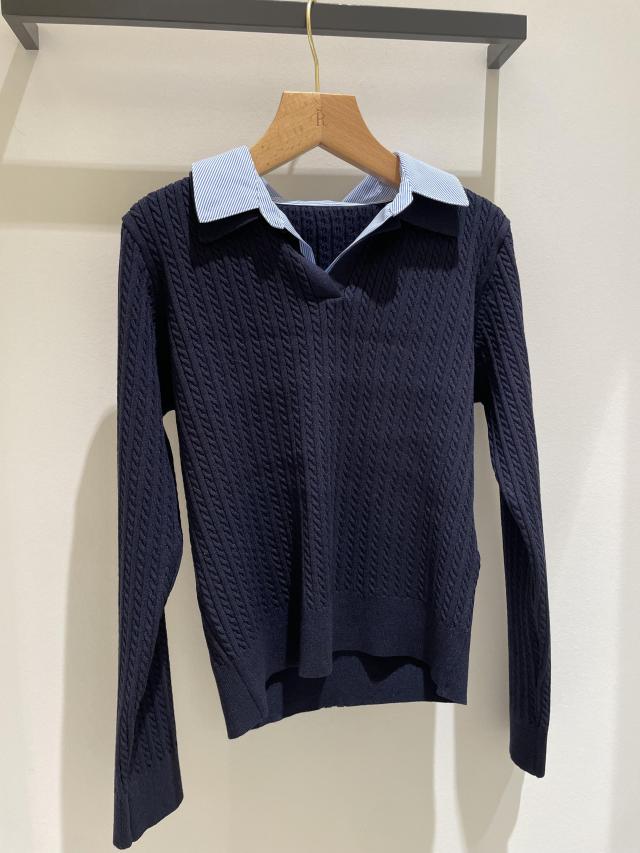 ダブルカラーミニケーブルニット