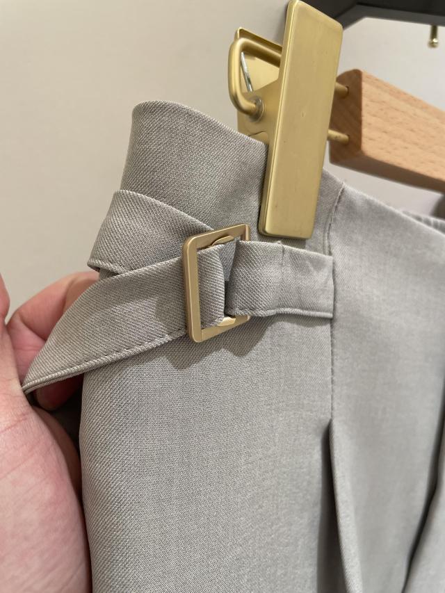 程よく光沢感があり、キレイめニットやカーディガンとの組み合わせをおすすめします。