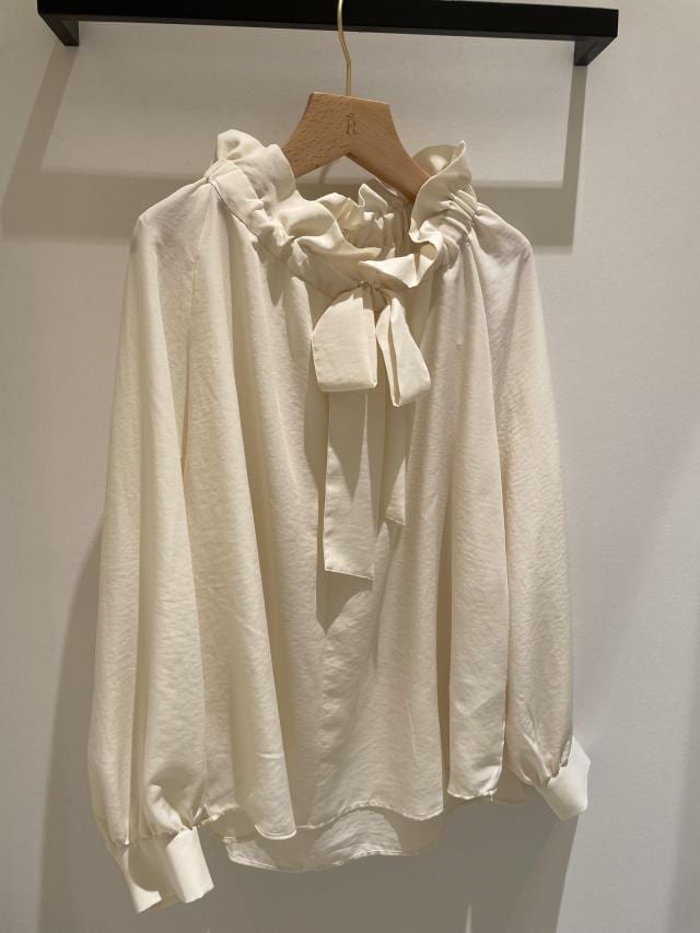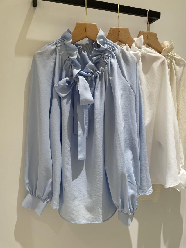 襟周りのフリルが素敵で、ボウタイも付いているので、リボンなど整えれば一枚着としてもお使いいただけます。