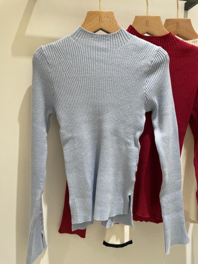 【美得】スリーブ釦アクセントリブニット/WEB限定FSサイズ・静電気防止