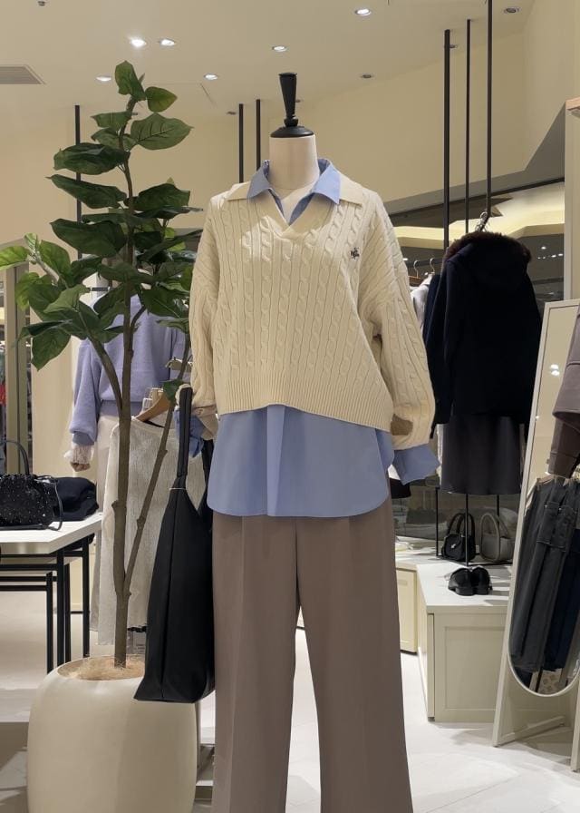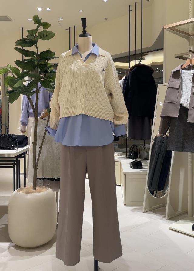 今季大人気の短丈仕様で、シャツなどと重ね着した着用をおすすめします。