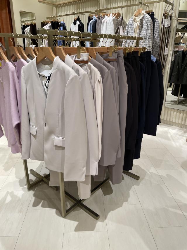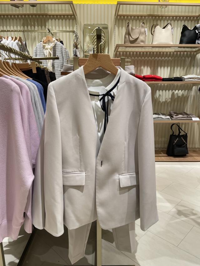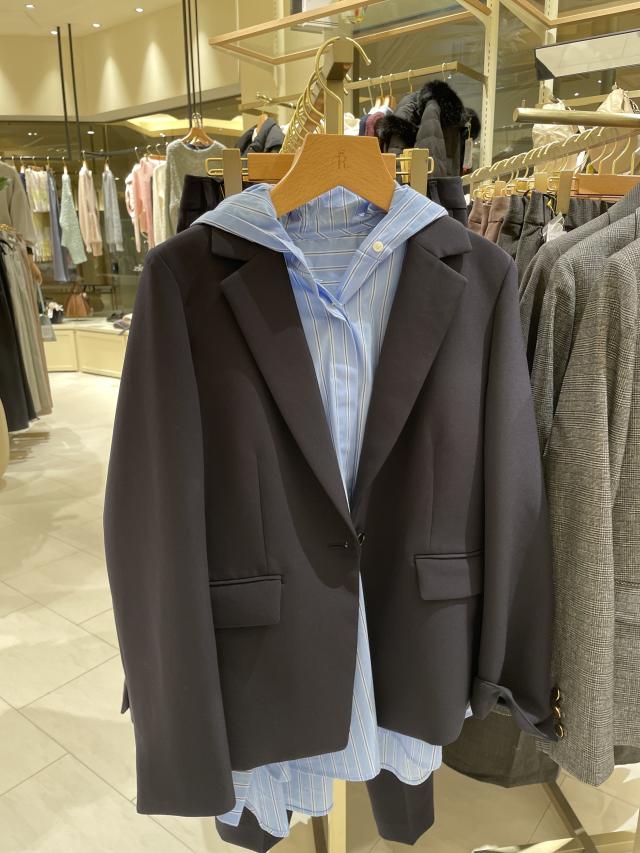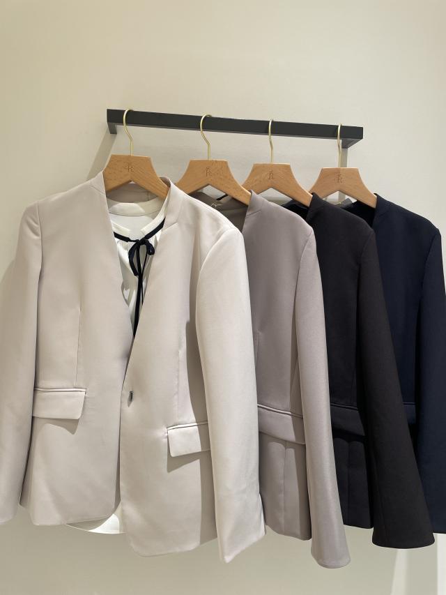 襟付きなので、ノーカラーよりクールな印象に見えます。