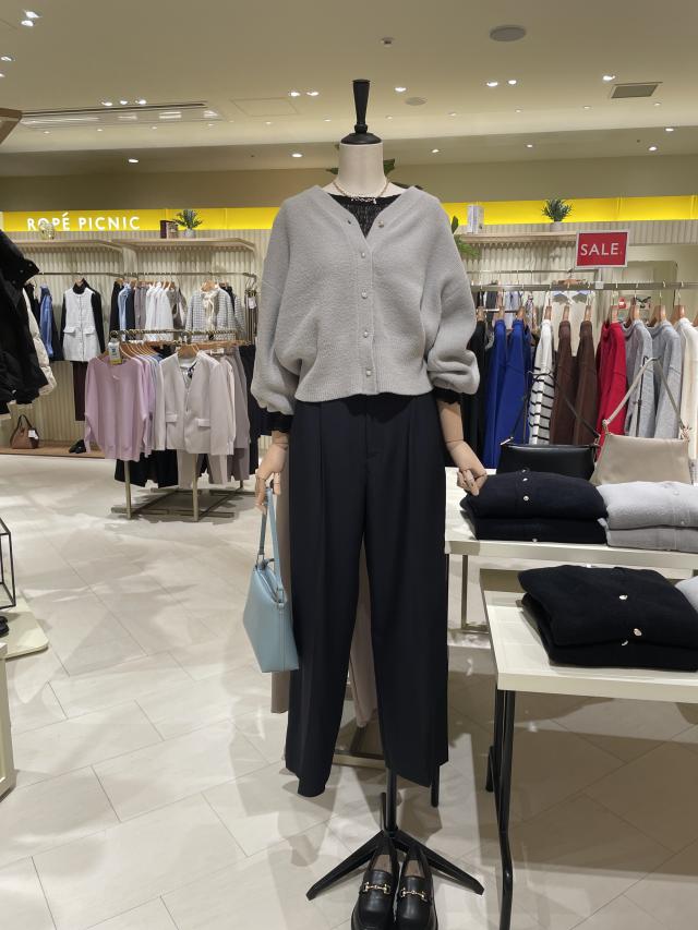 程よく光沢感があり、キレイめニットやカーディガンとの組み合わせをおすすめします。